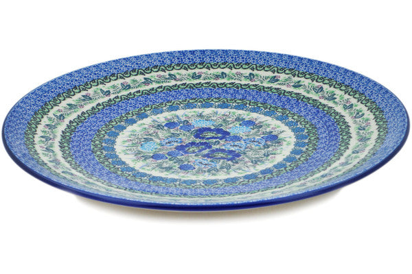 This Blue Meadow 14" Platter was handmade and hand decorated in Boleslawiec, Poland by skilled artisans according to old traditional methods. This is a Polish pottery Signature Unikat, which means that it has been hand painted with both sponges and brushes and it is signed by the artist who painted it. Unikat pieces are the most intricate works of art. Larger Unikat items take hours of very careful work to finish. This Polish stoneware is microwave, dishwasher, freezer, and oven safe up to 480°F. It does not contain lead or cadmium. It is part of the Blue Meadow Collection.