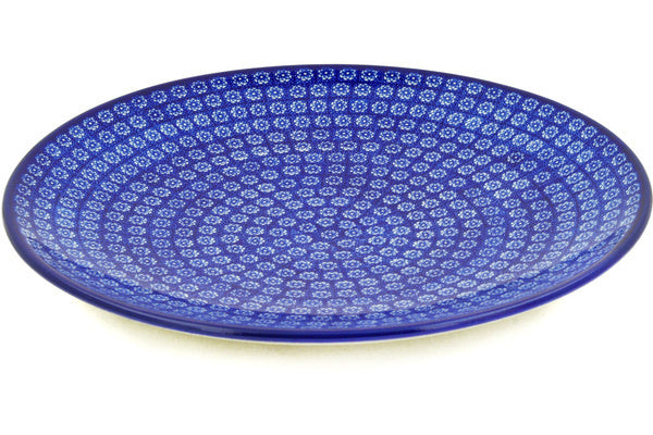 This Winter Daisies 14" Platter was handmade and hand decorated in Boleslawiec, Poland by skilled artisans according to old traditional methods. This Polish stoneware is microwave, dishwasher, freezer, and oven safe up to 480°F. It does not contain lead or cadmium. It is part of the Winter Daisies Collection.