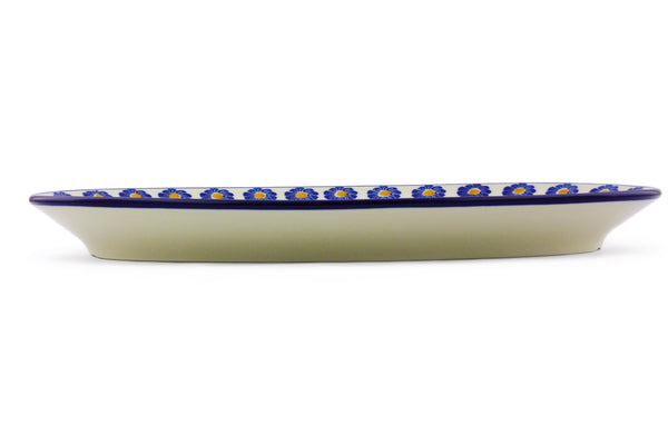 This Blue Zinnia 15" Platter was handmade and hand decorated in Boleslawiec, Poland by skilled artisans according to old traditional methods. This Polish stoneware is microwave, dishwasher, freezer, and oven safe up to 480°F. It does not contain lead or cadmium. It is part of the Blue Zinnia Collection.