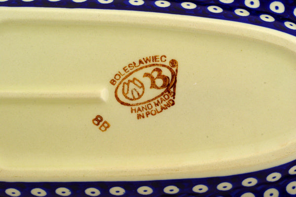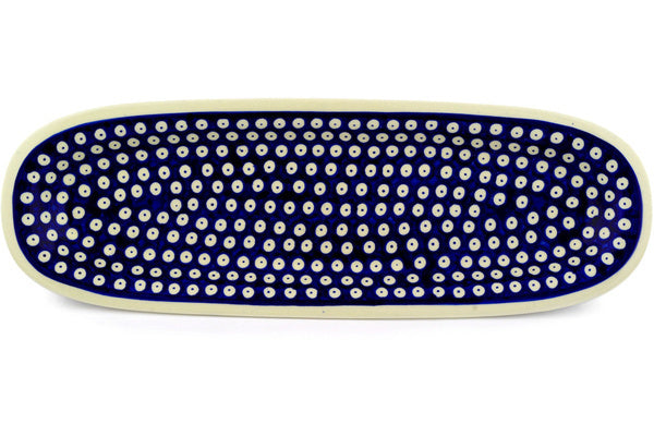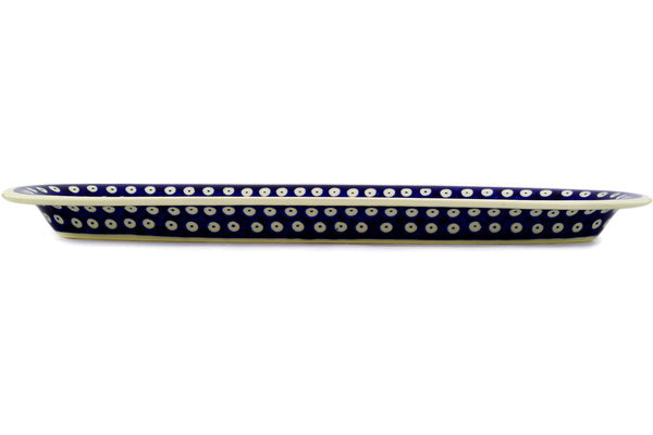 This Blue Eyes 17" Platter was handmade and hand decorated in Boleslawiec, Poland by skilled artisans according to old traditional methods. This Polish stoneware is microwave, dishwasher, freezer, and oven safe up to 480°F. It does not contain lead or cadmium. It is part of the Blue Eyes Collection.