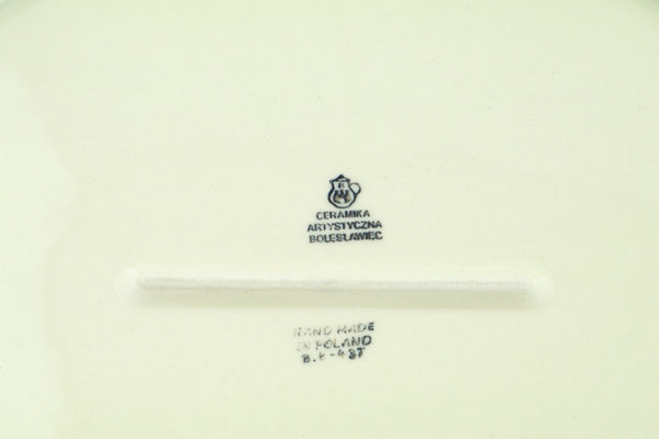 This Deep Into The Blue Sea 17" Platter was handmade and hand decorated in Boleslawiec, Poland by skilled artisans according to old traditional methods. This Polish stoneware is microwave, dishwasher, freezer, and oven safe up to 480°F. It does not contain lead or cadmium. It is part of the Deep Into The Blue Sea Collection.