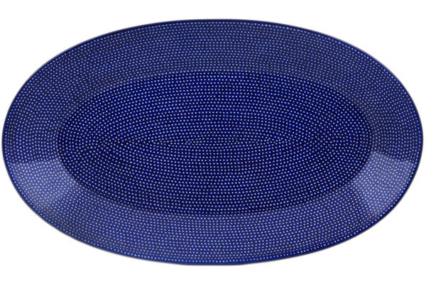 This Starry Night 18" Platter was handmade and hand decorated in Boleslawiec, Poland by skilled artisans according to old traditional methods. This is a Polish pottery Signature Unikat, which means that it has been hand painted with both sponges and brushes and it is signed by the artist who painted it. Unikat pieces are the most intricate works of art. Larger Unikat items take hours of very careful work to finish. This Polish stoneware is microwave, dishwasher, freezer, and oven safe up to 480°F. It does not contain lead or cadmium. It is part of the Starry Night Collection.
