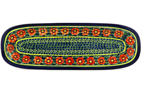 This Poppies All Around 19" Platter was handmade and hand decorated in Boleslawiec, Poland by skilled artisans according to old traditional methods. This is a Polish pottery Signature Unikat, which means that it has been hand painted with both sponges and brushes and it is signed by the artist who painted it. Unikat pieces are the most intricate works of art. Larger Unikat items take hours of very careful work to finish. This Polish stoneware is microwave, dishwasher, freezer, and oven safe up to 480°F. It does not contain lead or cadmium. It is part of the Poppies All Around Collection.
