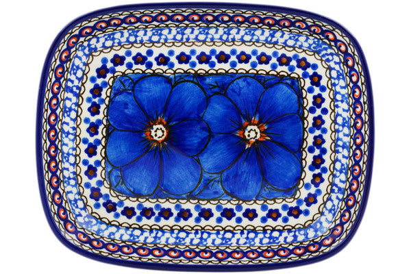 This Cobalt Poppies 7" Platter was handmade and hand decorated in Boleslawiec, Poland by skilled artisans according to old traditional methods. This is a Polish pottery Signature Unikat, which means that it has been hand painted with both sponges and brushes and it is signed by the artist who painted it. Unikat pieces are the most intricate works of art. Larger Unikat items take hours of very careful work to finish. This Polish stoneware is microwave, dishwasher, freezer, and oven safe up to 480°F. It does not contain lead or cadmium. It is part of the Cobalt Poppies Collection.