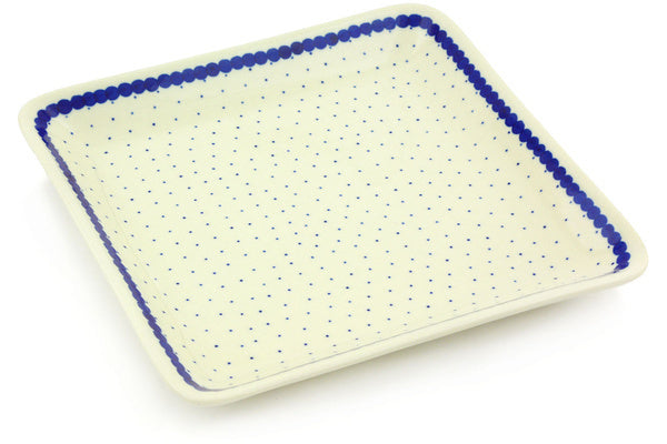 This Blue Polka Dot 8" Square Platter was handmade and hand decorated in Boleslawiec, Poland by skilled artisans according to old traditional methods. This Polish stoneware is microwave, dishwasher, freezer, and oven safe up to 480°F. It does not contain lead or cadmium. It is part of the Blue Polka Dot Collection.