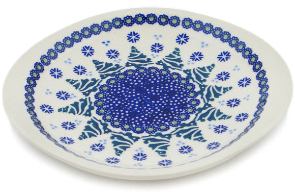 This Falling Snowflakes 8" Platter was handmade and hand decorated in Boleslawiec, Poland by skilled artisans according to old traditional methods. This Polish stoneware is microwave, dishwasher, freezer, and oven safe up to 480°F. It does not contain lead or cadmium. It is part of the Falling Snowflakes Collection.