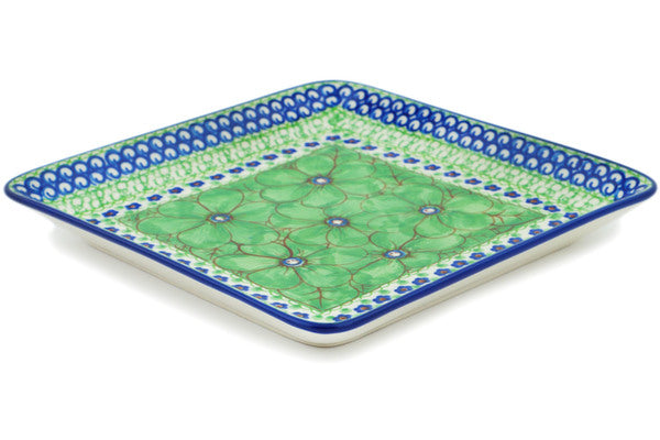 This Key Lime Dreams 8" Square Platter was handmade and hand decorated in Boleslawiec, Poland by skilled artisans according to old traditional methods. This is a Polish pottery Signature Unikat, which means that it has been hand painted with both sponges and brushes and it is signed by the artist who painted it. Unikat pieces are the most intricate works of art. Larger Unikat items take hours of very careful work to finish. This Polish stoneware is microwave, dishwasher, freezer, and oven safe up to 480°F. It does not contain lead or cadmium. It is part of the Key Lime Dreams Collection.