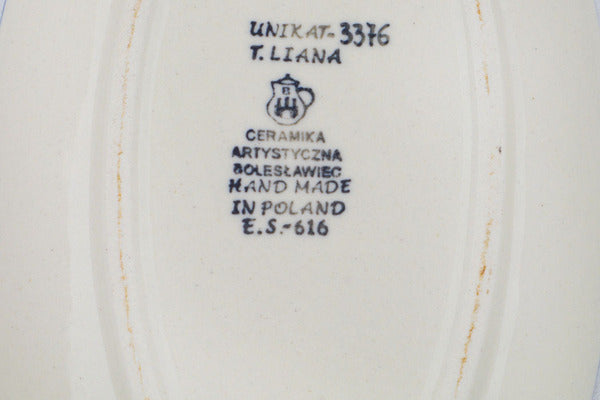 This Royal Garden 8" Platter was handmade and hand decorated in Boleslawiec, Poland by skilled artisans according to old traditional methods. This is a Polish pottery Signature Unikat, which means that it has been hand painted with both sponges and brushes and it is signed by the artist who painted it. Unikat pieces are the most intricate works of art. Larger Unikat items take hours of very careful work to finish. This Polish stoneware is microwave, dishwasher, freezer, and oven safe up to 480°F. It does not contain lead or cadmium. It is part of the Royal Garden Collection.