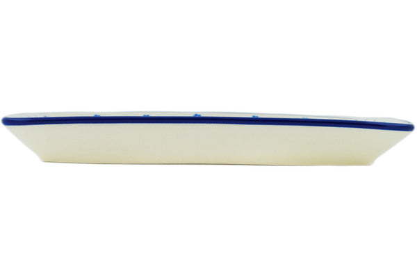 This Blue Spring 9" Platter was handmade and hand decorated in Boleslawiec, Poland by skilled artisans according to old traditional methods. This Polish stoneware is microwave, dishwasher, freezer, and oven safe up to 480°F. It does not contain lead or cadmium. It is part of the Blue Spring Collection.
