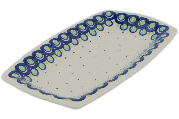 This Cerulean & Teal Bubbles 9" Platter was handmade and hand decorated in Boleslawiec, Poland by skilled artisans according to old traditional methods. This Polish stoneware is microwave, dishwasher, freezer, and oven safe up to 480°F. It does not contain lead or cadmium. It is part of the Cerulean & Teal Bubbles Collection.