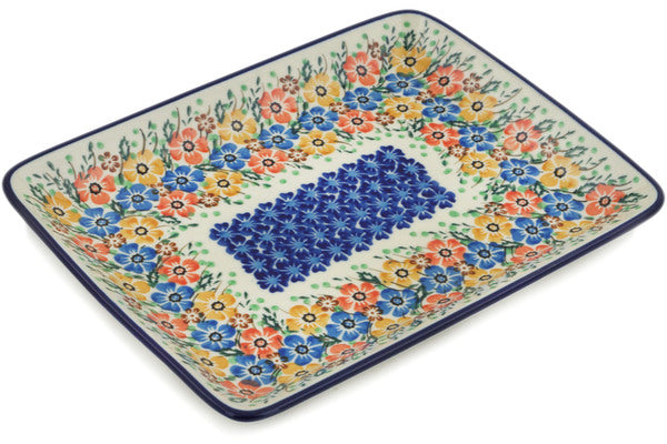 This Spring Blooms 9" Platter was handmade and hand decorated in Boleslawiec, Poland by skilled artisans according to old traditional methods. This is a Polish pottery Signature Unikat, which means that it has been hand painted with both sponges and brushes and it is signed by the artist who painted it. Unikat pieces are the most intricate works of art. Larger Unikat items take hours of very careful work to finish. This Polish stoneware is microwave, dishwasher, freezer, and oven safe up to 480°F. It does not contain lead or cadmium. It is part of the Spring Blooms Collection.