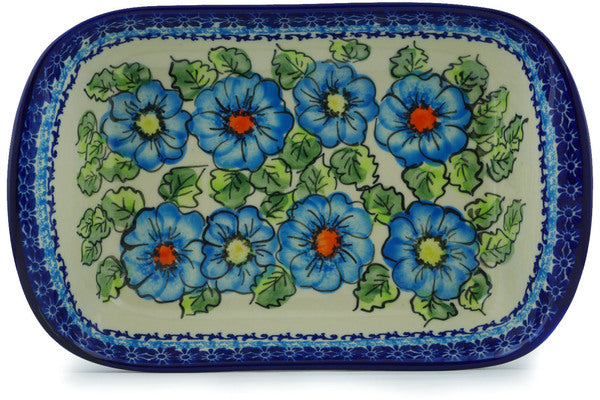 Home Platter with Handles 11" Bold Blue Poppies Theme UNIKAT