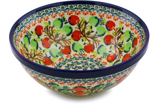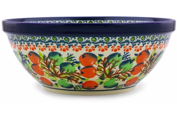 This Apple Orchard 8" Bowl was handmade and hand decorated in Boleslawiec, Poland by skilled artisans according to old traditional methods. This Polish stoneware is microwave, dishwasher, freezer, and oven safe up to 480°F. It does not contain lead or cadmium. It is part of the Apple Orchard Collection.