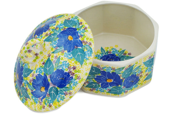 This Jovial 6" Pretzel Jar 6" was handmade and hand decorated in Boleslawiec, Poland by skilled artisans according to old traditional methods. This is a Polish pottery Signature Unikat, which means that it has been hand painted with both sponges and brushes and it is signed by the artist who painted it. Unikat pieces are the most intricate works of art. Larger Unikat items take hours of very careful work to finish. This Polish stoneware is microwave, dishwasher, freezer, and oven safe up to 480°F. It does not contain lead or cadmium. It is part of the Jovial Collection.
