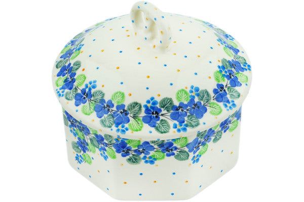 This Waterfall Blooms 6" Pretzel Jar 6" was handmade and hand decorated in Boleslawiec, Poland by skilled artisans according to old traditional methods. This Polish stoneware is microwave, dishwasher, freezer, and oven safe up to 480°F. It does not contain lead or cadmium. It is part of the Waterfall Blooms Collection.