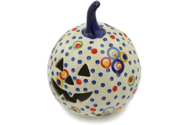 This Bubble Machine 6" Jack O Lantern Candle Holder was handmade and hand decorated in Boleslawiec, Poland by skilled artisans according to old traditional methods. This is a Polish pottery Signature Unikat, which means that it has been hand painted with both sponges and brushes and it is signed by the artist who painted it. Unikat pieces are the most intricate works of art. Larger Unikat items take hours of very careful work to finish. This Polish stoneware is microwave, dishwasher, freezer, and oven safe up to 480°F. It does not contain lead or cadmium. It is part of the Bubble Machine Collection.