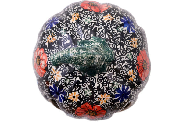 This Flowered Lace 7" Pumpkin Figurine was handmade and hand decorated in Boleslawiec, Poland by skilled artisans according to old traditional methods. This Polish stoneware is microwave, dishwasher, freezer, and oven safe up to 480°F. It does not contain lead or cadmium. It is part of the Flowered Lace Collection.
