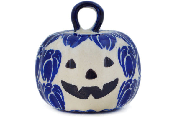 This Retro Blue Tulips 2" Pumpkin Ornament was handmade and hand decorated in Boleslawiec, Poland by skilled artisans according to old traditional methods. This Polish stoneware is microwave, dishwasher, freezer, and oven safe up to 480°F. It does not contain lead or cadmium. It is part of the Retro Blue Tulips Collection.