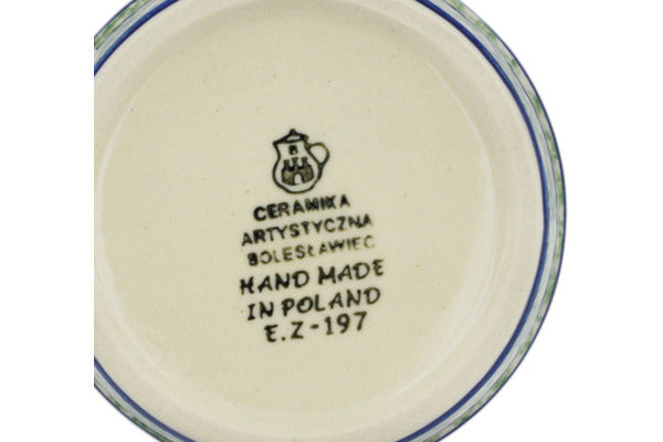 This Blue Daisy Circle Small Ramekin Bowl was handmade and hand decorated in Boleslawiec, Poland by skilled artisans according to old traditional methods. This Polish stoneware is microwave, dishwasher, freezer, and oven safe up to 480°F. It does not contain lead or cadmium. It is part of the Blue Daisy Circle Collection.