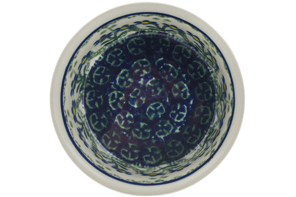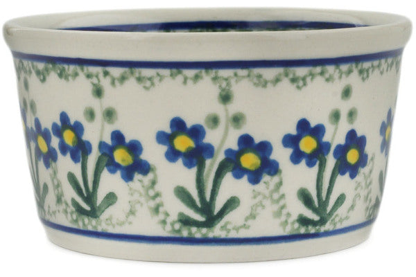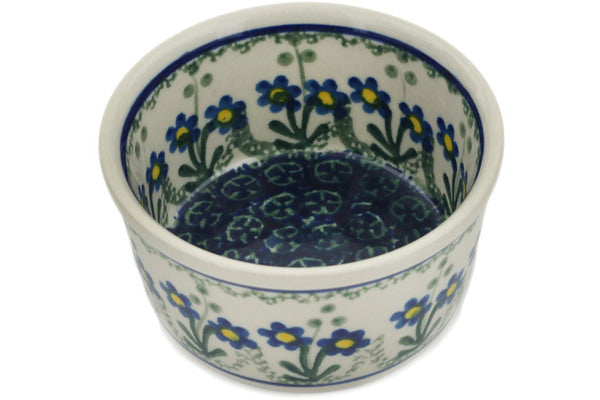 This Blue Daisy Circle Small Ramekin Bowl was handmade and hand decorated in Boleslawiec, Poland by skilled artisans according to old traditional methods. This Polish stoneware is microwave, dishwasher, freezer, and oven safe up to 480°F. It does not contain lead or cadmium. It is part of the Blue Daisy Circle Collection.