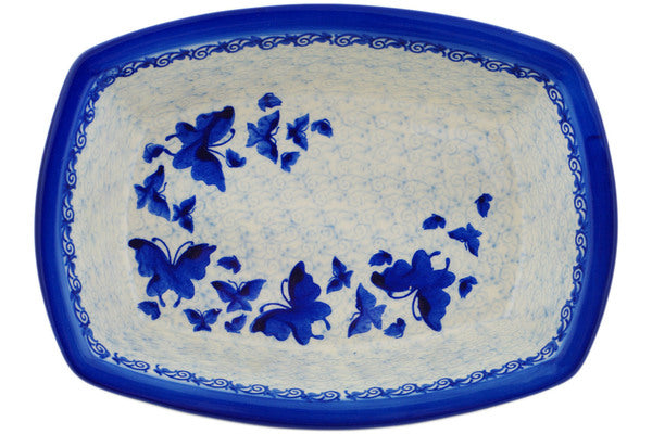 This Butterfly In The Sky 10" Rectangular Baker was handmade and hand decorated in Boleslawiec, Poland by skilled artisans according to old traditional methods. This Polish stoneware is microwave, dishwasher, freezer, and oven safe up to 480°F. It does not contain lead or cadmium. It is part of the Butterfly In The Sky Collection.