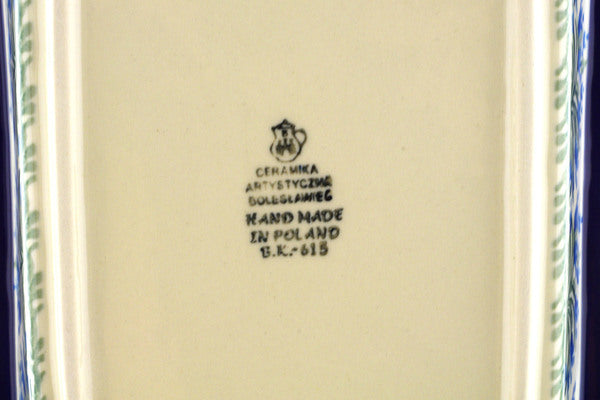 This Feathery Bluebells 10" Rectangular Baker was handmade and hand decorated in Boleslawiec, Poland by skilled artisans according to old traditional methods. This Polish stoneware is microwave, dishwasher, freezer, and oven safe up to 480°F. It does not contain lead or cadmium. It is part of the Feathery Bluebells Collection.
