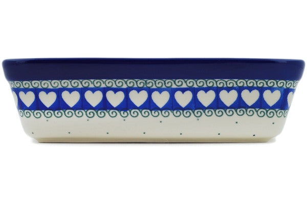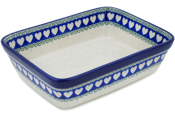 This Light Hearted 10" Rectangular Baker was handmade and hand decorated in Boleslawiec, Poland by skilled artisans according to old traditional methods. This Polish stoneware is microwave, dishwasher, freezer, and oven safe up to 480°F. It does not contain lead or cadmium. It is part of the Light Hearted Collection.