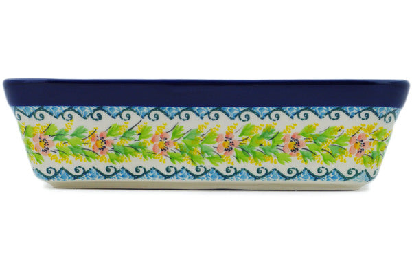 This Petal Dance 10" Rectangular Baker was handmade and hand decorated in Boleslawiec, Poland by skilled artisans according to old traditional methods. This is a Polish pottery Signature Unikat, which means that it has been hand painted with both sponges and brushes and it is signed by the artist who painted it. Unikat pieces are the most intricate works of art. Larger Unikat items take hours of very careful work to finish. This Polish stoneware is microwave, dishwasher, freezer, and oven safe up to 480°F. It does not contain lead or cadmium. It is part of the Petal Dance Collection.