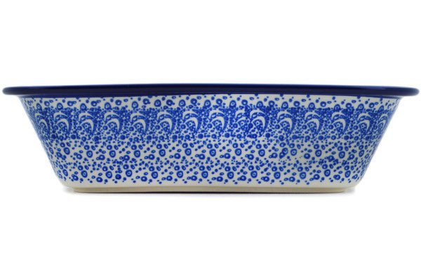 This Raindrops 10" Rectangular Baker was handmade and hand decorated in Boleslawiec, Poland by skilled artisans according to old traditional methods. This is a Polish pottery Signature Unikat, which means that it has been hand painted with both sponges and brushes and it is signed by the artist who painted it. Unikat pieces are the most intricate works of art. Larger Unikat items take hours of very careful work to finish. This Polish stoneware is microwave, dishwasher, freezer, and oven safe up to 480°F. It does not contain lead or cadmium. It is part of the Raindrops Collection.