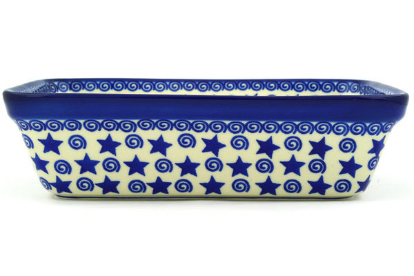 This Stars And Fireworks 10" Rectangular Baker was handmade and hand decorated in Boleslawiec, Poland by skilled artisans according to old traditional methods. This Polish stoneware is microwave, dishwasher, freezer, and oven safe up to 480°F. It does not contain lead or cadmium. It is part of the Stars And Fireworks Collection.