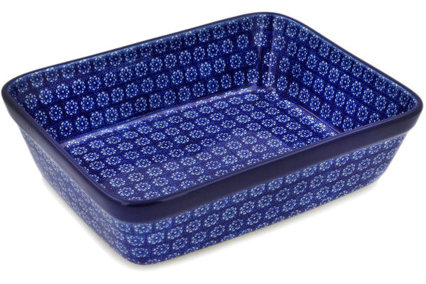 This Winter Daisies 10" Rectangular Baker was handmade and hand decorated in Boleslawiec, Poland by skilled artisans according to old traditional methods. This Polish stoneware is microwave, dishwasher, freezer, and oven safe up to 480°F. It does not contain lead or cadmium. It is part of the Winter Daisies Collection.