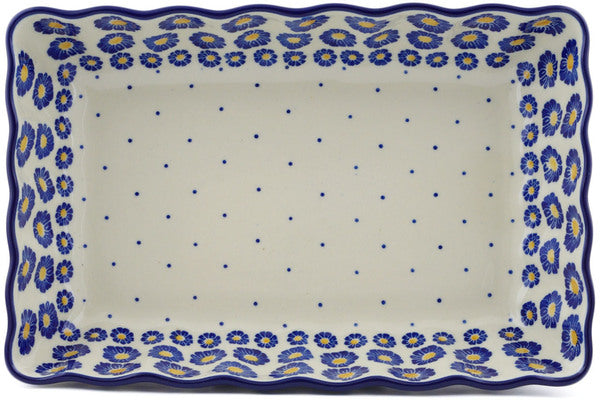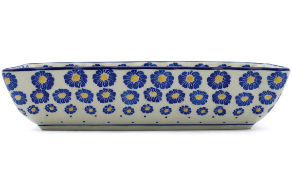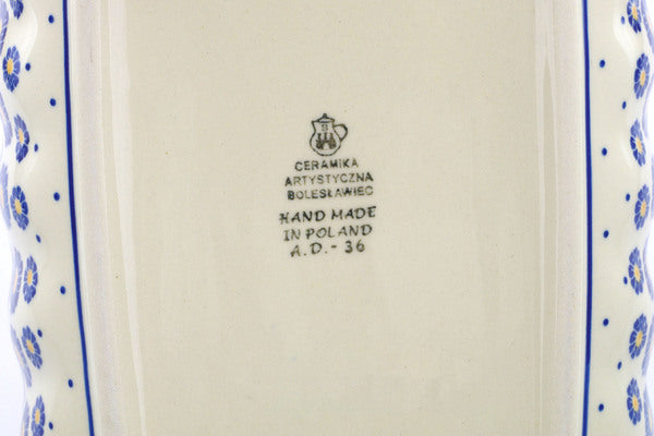This Blue Zinnia 11" Rectangular Baker was handmade and hand decorated in Boleslawiec, Poland by skilled artisans according to old traditional methods. This Polish stoneware is microwave, dishwasher, freezer, and oven safe up to 480°F. It does not contain lead or cadmium. It is part of the Blue Zinnia Collection.