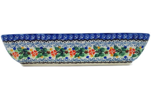 This Springtime Wreath 11" Rectangular Baker was handmade and hand decorated in Boleslawiec, Poland by skilled artisans according to old traditional methods. This is a Polish pottery Signature Unikat, which means that it has been hand painted with both sponges and brushes and it is signed by the artist who painted it. Unikat pieces are the most intricate works of art. Larger Unikat items take hours of very careful work to finish. This Polish stoneware is microwave, dishwasher, freezer, and oven safe up to 480°F. It does not contain lead or cadmium. It is part of the Springtime Wreath Collection.