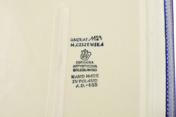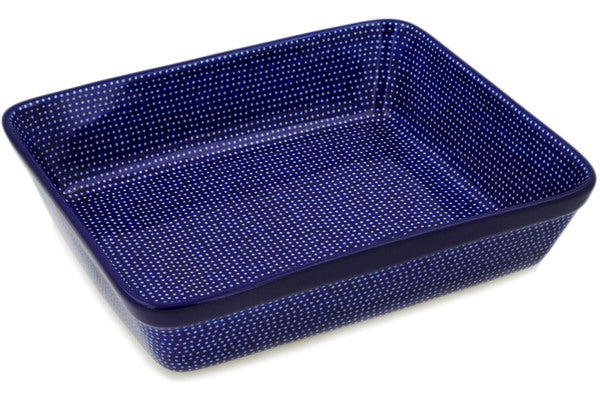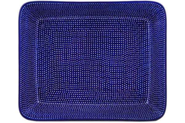 This Starry Night 11" Rectangular Baker was handmade and hand decorated in Boleslawiec, Poland by skilled artisans according to old traditional methods. This is a Polish pottery Signature Unikat, which means that it has been hand painted with both sponges and brushes and it is signed by the artist who painted it. Unikat pieces are the most intricate works of art. Larger Unikat items take hours of very careful work to finish. This Polish stoneware is microwave, dishwasher, freezer, and oven safe up to 480°F. It does not contain lead or cadmium. It is part of the Starry Night Collection.