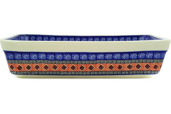 This Aztec Night 12" Rectangular Baker was handmade and hand decorated in Boleslawiec, Poland by skilled artisans according to old traditional methods. This Polish stoneware is microwave, dishwasher, freezer, and oven safe up to 480°F. It does not contain lead or cadmium. It is part of the Aztec Night Collection.