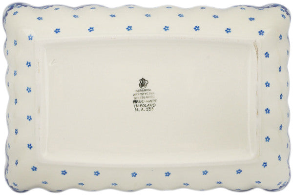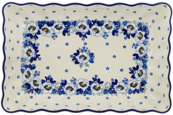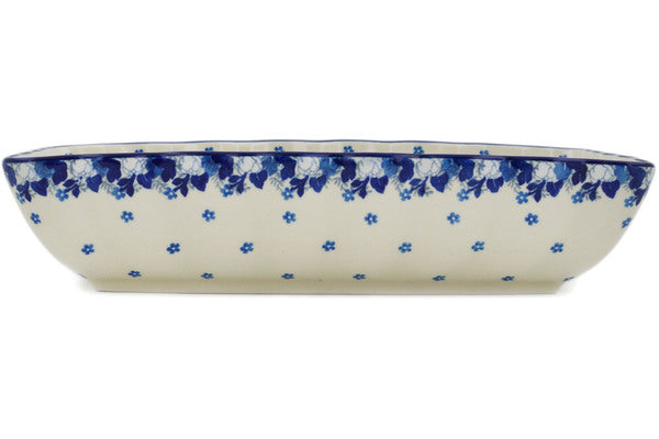 This Blue Spring 12" Rectangular Baker was handmade and hand decorated in Boleslawiec, Poland by skilled artisans according to old traditional methods. This Polish stoneware is microwave, dishwasher, freezer, and oven safe up to 480°F. It does not contain lead or cadmium. It is part of the Blue Spring Collection.