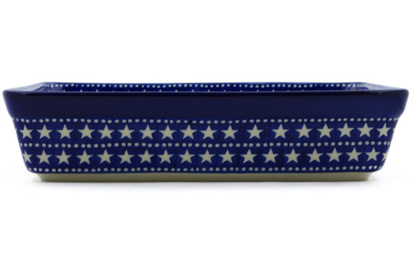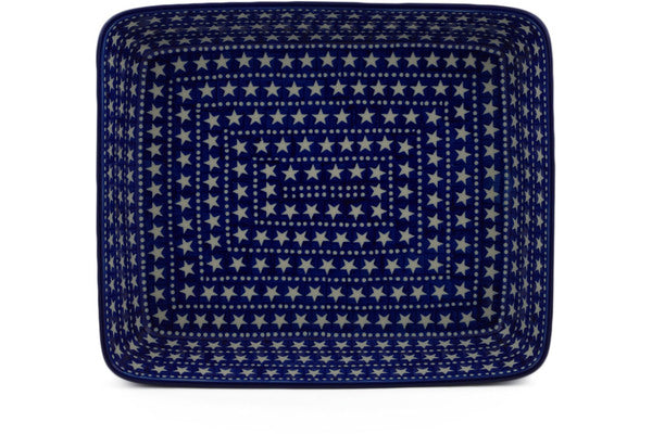 This Midnight Stars 12" Rectangular Baker was handmade and hand decorated in Boleslawiec, Poland by skilled artisans according to old traditional methods. This Polish stoneware is microwave, dishwasher, freezer, and oven safe up to 480°F. It does not contain lead or cadmium. It is part of the Midnight Stars Collection.