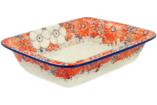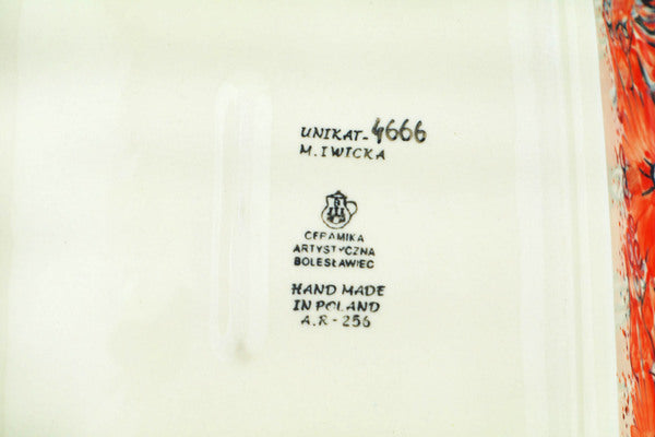 This Peachy Keen 12" Rectangular Baker was handmade and hand decorated in Boleslawiec, Poland by skilled artisans according to old traditional methods. This is a Polish pottery Signature Unikat, which means that it has been hand painted with both sponges and brushes and it is signed by the artist who painted it. Unikat pieces are the most intricate works of art. Larger Unikat items take hours of very careful work to finish. This Polish stoneware is microwave, dishwasher, freezer, and oven safe up to 480°F. It does not contain lead or cadmium. It is part of the Peachy Keen Collection.