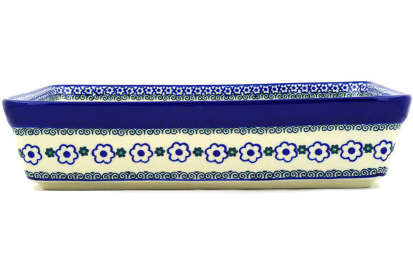 This White Daisy Dots 12" Rectangular Baker was handmade and hand decorated in Boleslawiec, Poland by skilled artisans according to old traditional methods. This Polish stoneware is microwave, dishwasher, freezer, and oven safe up to 480°F. It does not contain lead or cadmium. It is part of the White Daisy Dots Collection.