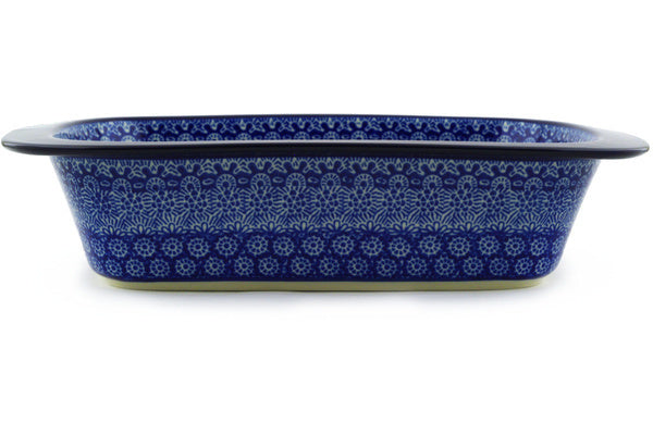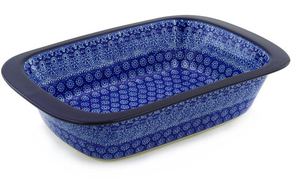 This Winter Frost 13" Rectangular Baker was handmade and hand decorated in Boleslawiec, Poland by skilled artisans according to old traditional methods. This Polish stoneware is microwave, dishwasher, freezer, and oven safe up to 480°F. It does not contain lead or cadmium. It is part of the Winter Frost Collection.