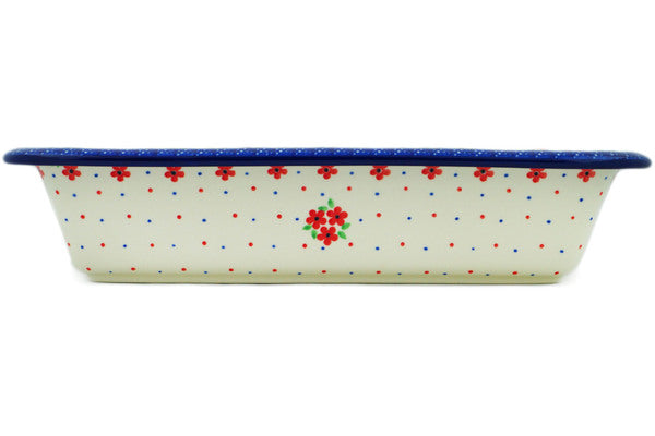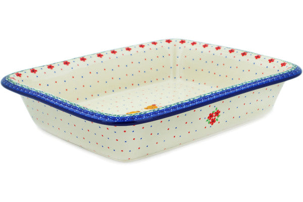 This Royal Teddy 14" Rectangular Baker was handmade and hand decorated in Boleslawiec, Poland by skilled artisans according to old traditional methods. This is a Polish pottery Signature Unikat, which means that it has been hand painted with both sponges and brushes and it is signed by the artist who painted it. Unikat pieces are the most intricate works of art. Larger Unikat items take hours of very careful work to finish. This Polish stoneware is microwave, dishwasher, freezer, and oven safe up to 480°F. It does not contain lead or cadmium. It is part of the Royal Teddy Collection.
