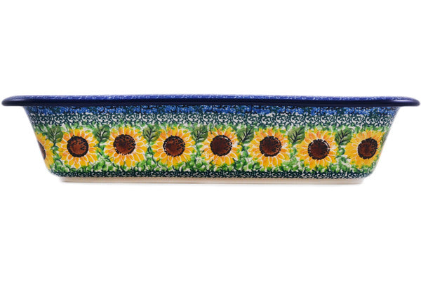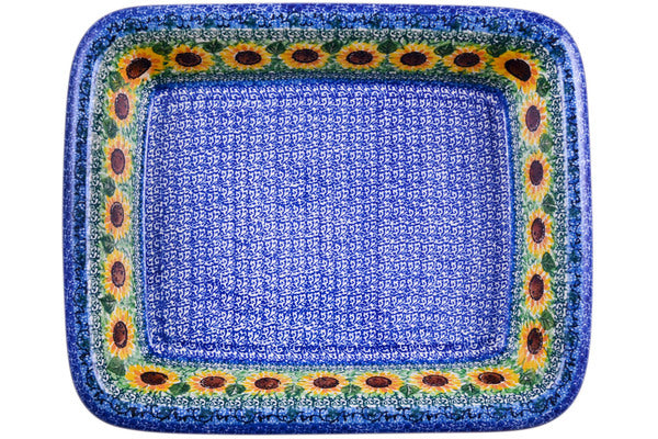 This Summer Sunnies 14" Rectangular Baker was handmade and hand decorated in Boleslawiec, Poland by skilled artisans according to old traditional methods. This is a Polish pottery Signature Unikat, which means that it has been hand painted with both sponges and brushes and it is signed by the artist who painted it. Unikat pieces are the most intricate works of art. Larger Unikat items take hours of very careful work to finish. This Polish stoneware is microwave, dishwasher, freezer, and oven safe up to 480°F. It does not contain lead or cadmium. It is part of the Summer Sunnies Collection.