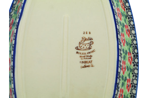 This Poppies Charm 8" Rectangular Baker was handmade and hand decorated in Boleslawiec, Poland by skilled artisans according to old traditional methods. This is a Polish pottery Signature Unikat, which means that it has been hand painted with both sponges and brushes and it is signed by the artist who painted it. Unikat pieces are the most intricate works of art. Larger Unikat items take hours of very careful work to finish. This Polish stoneware is microwave, dishwasher, freezer, and oven safe up to 480°F. It does not contain lead or cadmium. It is part of the Poppies Charm Collection.