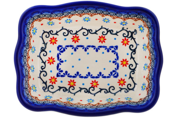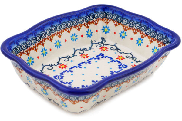 This Sunflower Dance 8" Rectangular Baker was handmade and hand decorated in Boleslawiec, Poland by skilled artisans according to old traditional methods. This Polish stoneware is microwave, dishwasher, freezer, and oven safe up to 480°F. It does not contain lead or cadmium. It is part of the Sunflower Dance Collection.