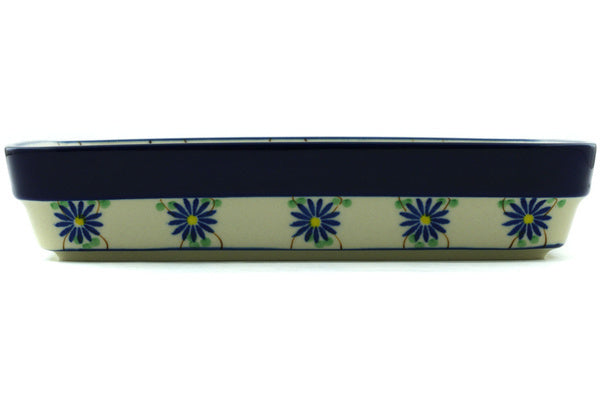 This Aster Trellis 9" Rectangular Baker was handmade and hand decorated in Boleslawiec, Poland by skilled artisans according to old traditional methods. This Polish stoneware is microwave, dishwasher, freezer, and oven safe up to 480°F. It does not contain lead or cadmium. It is part of the Aster Trellis Collection.