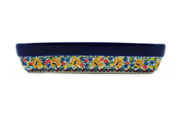 This Lovely Surprise 9" Rectangular Baker was handmade and hand decorated in Boleslawiec, Poland by skilled artisans according to old traditional methods. This is a Polish pottery Signature Unikat, which means that it has been hand painted with both sponges and brushes and it is signed by the artist who painted it. Unikat pieces are the most intricate works of art. Larger Unikat items take hours of very careful work to finish. This Polish stoneware is microwave, dishwasher, freezer, and oven safe up to 480°F. It does not contain lead or cadmium. It is part of the Lovely Surprise Collection.