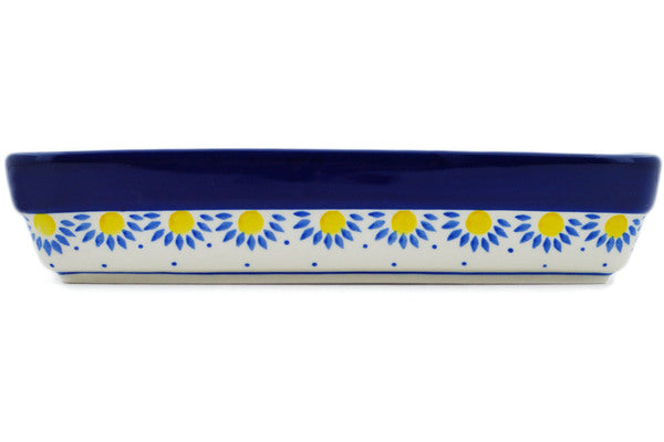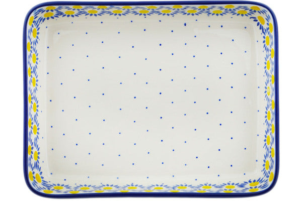 This Radient Scales 9" Rectangular Baker was handmade and hand decorated in Boleslawiec, Poland by skilled artisans according to old traditional methods. This Polish stoneware is microwave, dishwasher, freezer, and oven safe up to 480°F. It does not contain lead or cadmium. It is part of the Radient Scales Collection.