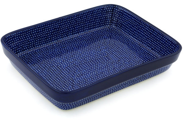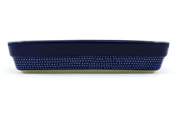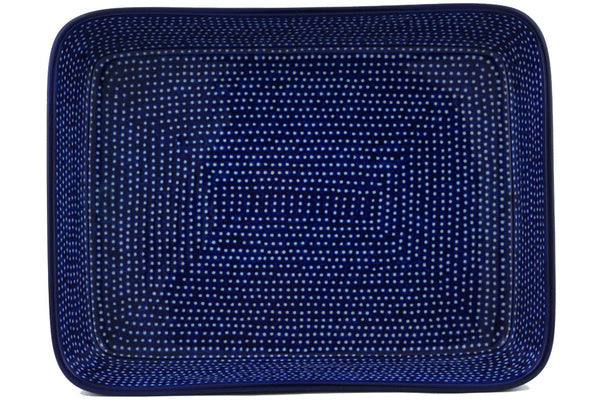 This Starry Night 9" Rectangular Baker was handmade and hand decorated in Boleslawiec, Poland by skilled artisans according to old traditional methods. This is a Polish pottery Signature Unikat, which means that it has been hand painted with both sponges and brushes and it is signed by the artist who painted it. Unikat pieces are the most intricate works of art. Larger Unikat items take hours of very careful work to finish. This Polish stoneware is microwave, dishwasher, freezer, and oven safe up to 480°F. It does not contain lead or cadmium. It is part of the Starry Night Collection.