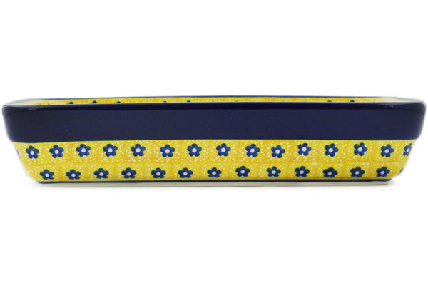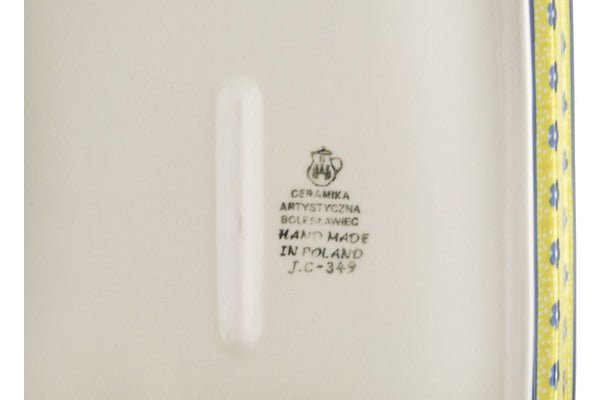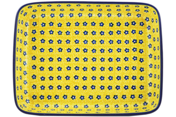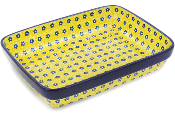 This Sunshine 9" Rectangular Baker was handmade and hand decorated in Boleslawiec, Poland by skilled artisans according to old traditional methods. This Polish stoneware is microwave, dishwasher, freezer, and oven safe up to 480°F. It does not contain lead or cadmium. It is part of the Sunshine Collection.