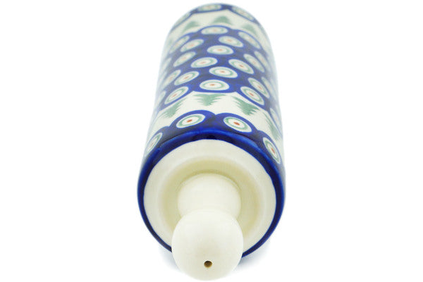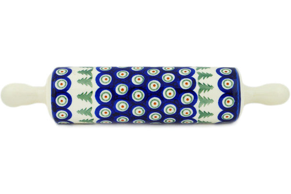 This Peacock Evergreen 13" Rolling Pin was handmade and hand decorated in Boleslawiec, Poland by skilled artisans according to old traditional methods. This Polish stoneware is microwave, dishwasher, freezer, and oven safe up to 480°F. It does not contain lead or cadmium. It is part of the Peacock Evergreen Collection.